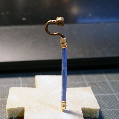 きゅぽ灯様に煙管を持たせたくて、でもねんどろのオマケパーツは手首ついてて×。雛道具は微妙にデカくて×。リーメントあたりが妥協線だけど、やっぱあの青くて先っちょ曲がってて金色がぐるぐるしてるアレがいい!!!……ということで。作りましょうそうしましょう。